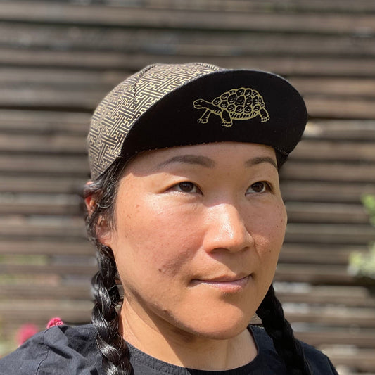 Tortoise & Hare Cycling Cap - Black & Gold Sayagata Pattern